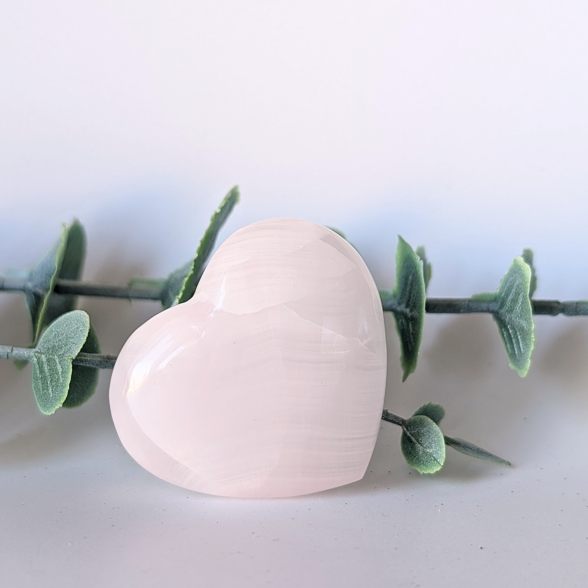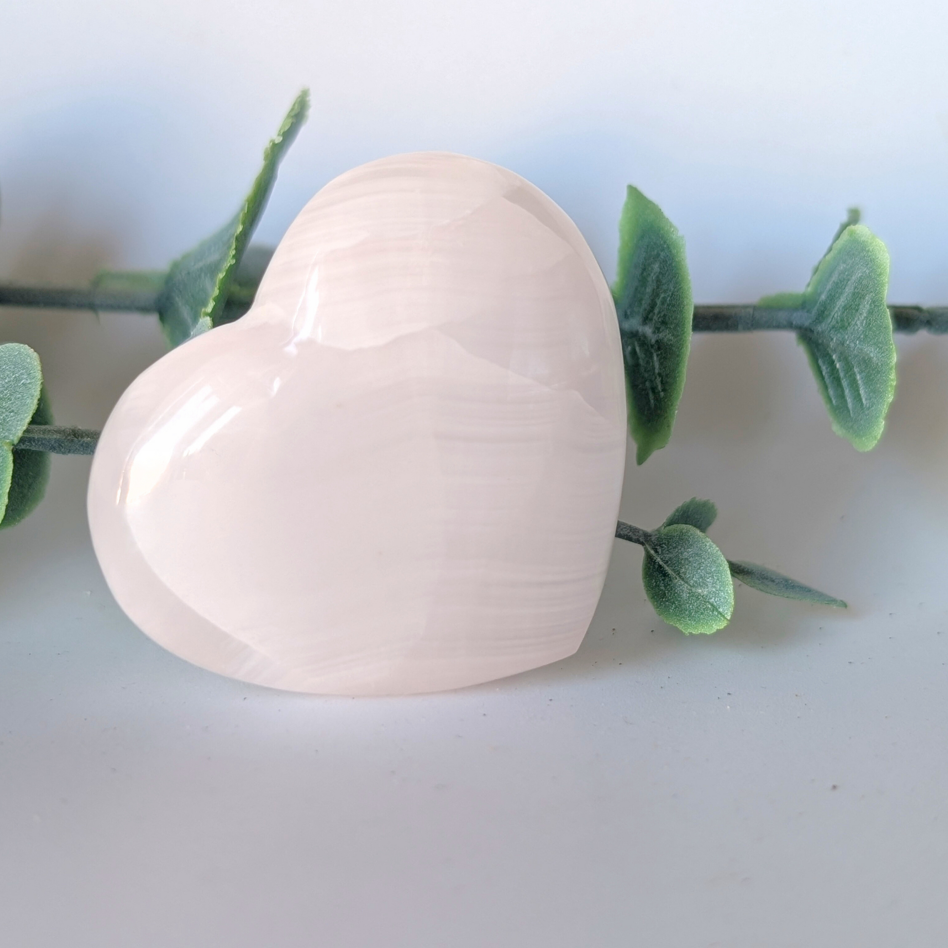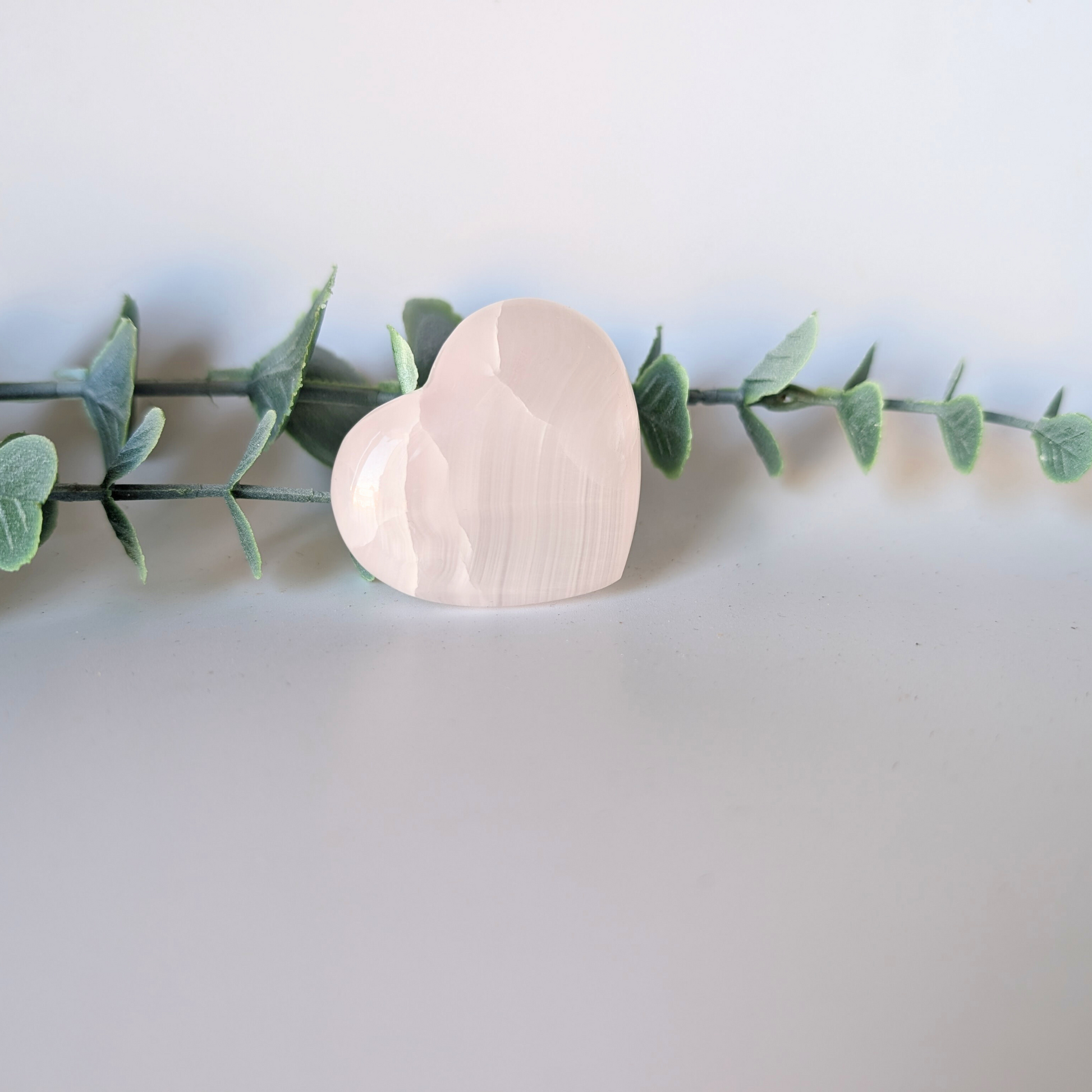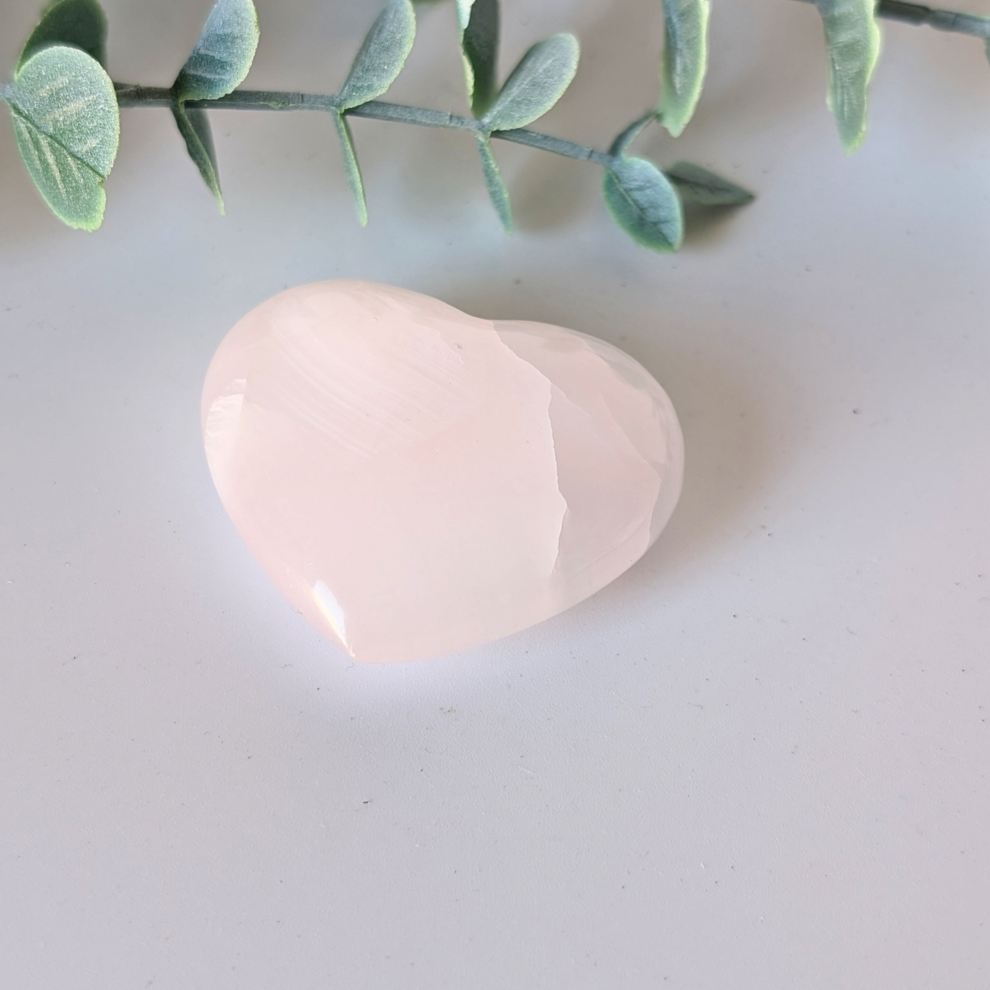 Een zachtroze hart, glad gepolijst en warm om vast te houden. Dit Mangaan Calciet hart straalt zachtheid en warmte uit – een liefdevol steentje dat je meteen uitnodigt om even stil te staan en dieper te voelen.